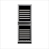This stellar performer, with its glossy black interior, is the stylish solution to serious wine connoisseursÕ storage and display needs. The upper and lower compartments have independent cooling systems, allowing you to set each to its own desired temperature. * Stores up to 90 bottles - 45 in each compartment, including magnums * Each section has its own cooling system and MicroSentryª refrigeration monitor for exact temperature control * Exclusive MicroSentryª refrigeration monitor has a visual/audible alarm to alert if the temperature goes above or below the set point for an extended time which may impact storage quality or if the door is left ajar * Amber LED display in each compartment shows content temperature in real time * Intuitive touch controls are discreetly located for understated elegance * Temperature in each compartment can be set between 40¡ and 65¡F, independent of each other * Lighted and inclined display rack in each section showcases wine bottles, with additional storage in the back * Wine racks extend smoothly, with built-in safety stops, to hold all types of wine bottles * Ten extendable racks and two fixed wine cradles * Elegant interior lighting displays fine wines and may be set for continuous illumination with one-touch control * Clear, solid white maple trim on rack fronts is perfect for custom finishing to match cabinetry * Doors are constructed of argon-filled, dual-pane, tinted UV-resistant glass to displays contents while protecting them from damaging UV rays * Door swing is reversible and requires only 90¡ opening to extend racks * Clean, continuous toe kick adds a stylish finish * Two distinctive colors: monochromatic black with black interior or stainless steel framed door with black cabinet and black interior * You may also order your wine cellar with doors that accept custom overlay frames supplied by your cabinet maker. The Marvel overlay frame is one of the simplest to install. * Full auto defrost * 68-1/8ÓH