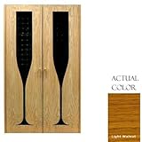 Vinotemp VINO-700CHAMP-LTWA 440 Bottle Carved Wine Cellar With Champagne Glass Design - Glass Doors / Light Walnut Cabinet. VINO-700CHAMP-LTWA. All Wine Refrigerators. This Wine Cellar features a stunning champagne glass carving on each door for an elegant look to wine storage. With brass finish security locks and a Wine-Mate self-contained cooling system, this Wine Cellar ensures your wine is stored away safely and properly while making a great conversation piece for any home. Vinotemp Wine Cellars are complete wine storage solutions, handcrafted with domestic woods in Southern California. They maintain an ideal environment for both short-term storage and long-term aging for all types of wines. (Capacity varies with size and shape of bottle. ) Dimensions: (51 inchW x 29 inchD x 88 inchH).